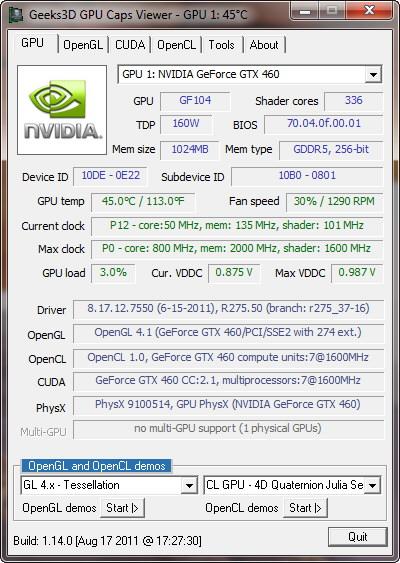 La conocida aplicacion capaz de brindarnos cada detalle de nuestras tarjetas graficas, el GPU Caps Viewer ha recibido una nueva actualización, que no cuenta con grandes mejoras, pero que dispone de soporte para el recien salido OpenGL 4.2, y soporte para múltiples tarjetas en el GPU panel.